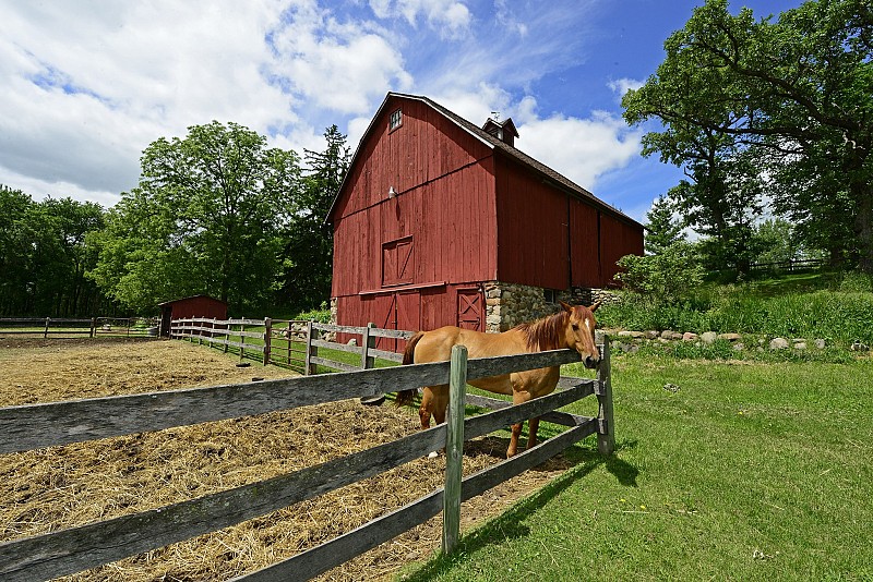 | Description: 80 acres estate type setting in Grant with Award Winning Mahtomedi Schools. 40 acres are wooded, 40 acres are rolling! This is the perfect set up for horses, the parcel cannot be split. 4 bedrooms, 6 baths and over 4600 sq ft finished. An exceptional 2 story walkout with many, many amenities including a barn and tack house. |