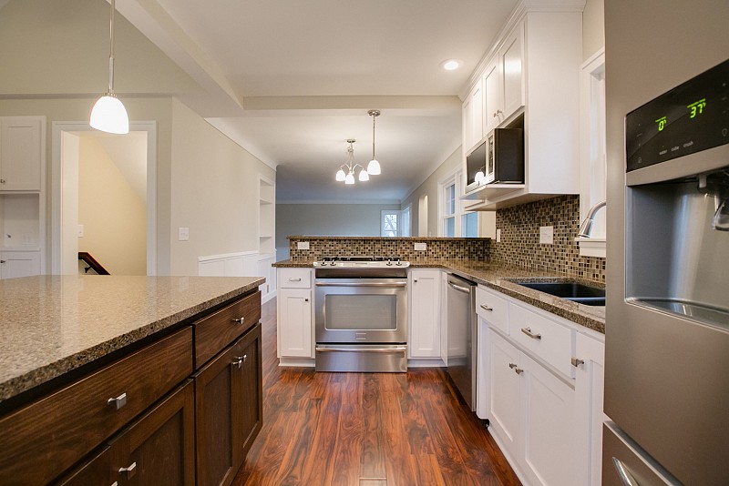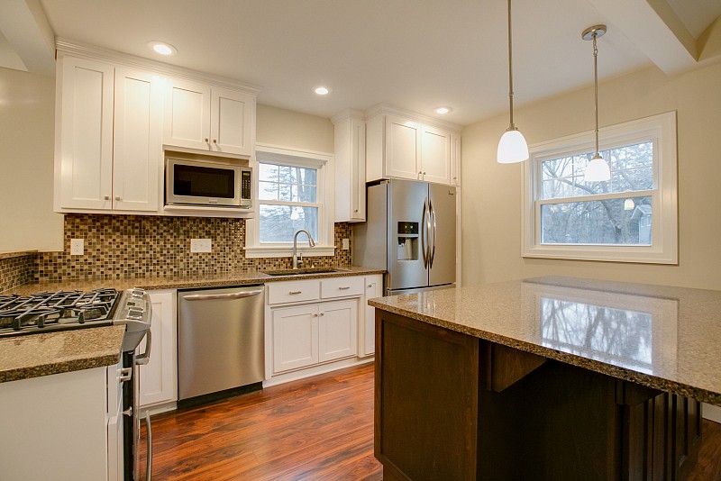 Totally remodeled throughout! The list of updates is endless and includes: new windows, new plumbing from street to house and throughout, new electrical throughout entire house. Custom built kitchen, bath and built-in cabinets, new hardwood flooring in upper level and new tile and carpeting in lower level. New light fixtures and 3 panel doors throughout. In-floor heating with separate thermostat controls for both bathrooms and laundry room. Cambria countertops in laundry room and Quartz countertops in kitchen and both bathrooms. New maintenance free deck. New garage, hot water heater and furnace. Move-in ready!